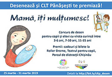 De această dată CLT Pănășești organizează un concurs de desen pentru copiii și elevii din localitate. Concursul face parte din evenimentele desfășurate în “Luna pentru viață 2019” cu scopul de a creşte gradul de informare şi implicare al oamenilor în promovarea şi sprijinirea vieţii. Cîștigătorii vor fi premiați la final cu cadouri și bilete la Roller Drome, Teatrul pentru copii, Parcul de distracții Chișinău.